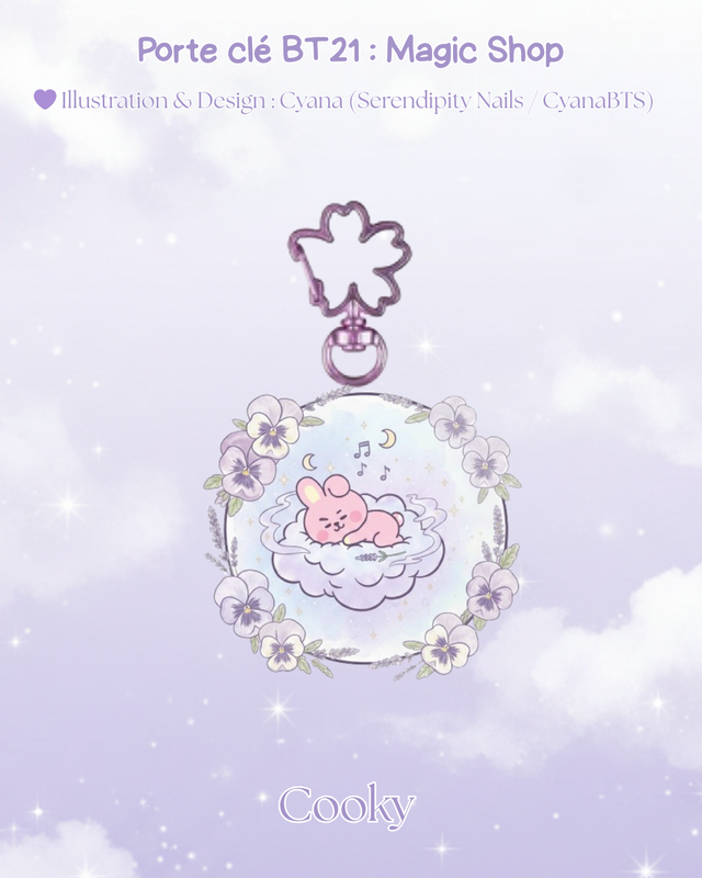 Chaque porte-clé est une véritable petite œuvre d'art miniature, mettant en scène ton personnage favori dans un décor céleste et floral :