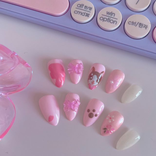 - Fait à la main avec amour, chaque ongle est une petite œuvre d'art, créée avec le souci du détail pour capturer l'essence de Sakura et Mochi.