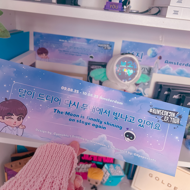 Aujourd'hui, il me reste un stock important de ces bannières à la maison. Plutôt que de les laisser dormir dans un carton, je trouve cela dommage pour le travail de création, pour les sponsors et surtout pour vous, les ARMYs ! 💜